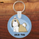 Cute Shih Tzu keychain! A drawing of the toy dog breed, with a gold and white coat, is in the centre with a light blue background. Adorable dog animation made especially for Shih Tzu owners! Original dog art Copyright © Menagerie Mayhem.