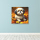 Shih Tzu Puppy Dog Playing in Fall Leaves Canvas Print