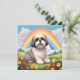 A personalised Shih Tzu memorial sympathy card with a beautiful painting of a Shih Tzu on a heavenly hill with a beautiful rainbow overhead. Symbolising the Shih Tzu dog has passed the rainbow bridge to doggy heaven. You can personalise it with your own Shih Tzu dog's name or any other text on the back side of the card. Makes a special memorial or sympathy gift for any Shih Tzu dog lover if their dear dog has passed.