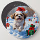 Shih Tzu Running in Snow with Christmas Hat 6 Cm Round Badge