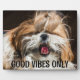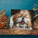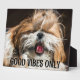 Shih tzu tongue funny custom text plaque. Cute, fun, silly female shih tzu, brown and white dog with big character. One curious lady cuddly lap dog that will brighten your day.