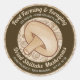 Shiitake mushroom icon in woodcut shading style. Seamless mushrooms pattern background. Four text fields to customise.