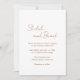 Modern wedding invitation featuring a simple design with your names in an elegant script along with your event details in copper over a white background. The template includes a field for additional details on the back or you may delete the text to leave the back blank. This minimal, monochromatic design a deep copper / rust colour would work well for a fall / autumn wedding. If you prefer, you may change the colours in the design editing tool.