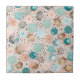A vibrant abstract ceramic tile featuring scattered circles and dots in varying sizes, set against a soft, light background. With a playful mix of turquoise, pink, and gold hues—some accented with a sparkling glitter effect—this seamless pattern radiates energy and elegance. Ideal for those drawn to modern, whimsical aesthetics with a touch of glam, perfect for festive occasions, creative projects, or joyful, feminine-inspired themes.