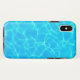 Phone case with a photograph of clear blue pool water, with shimmering reflections.