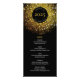 This New Year's Eve party menu features a circular pattern of shimmering gold-tone lights against rich black, creating a circular frame for the year indication. Add your menu details below It is versatile enough for an office holiday party, birthday party, New Year's Eve wedding, or holiday cocktail party. Text on the reverse can be edited or removed to leave the back blank. Available with matching products.