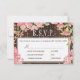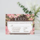 Editable text wedding RSVP with menu options featuring rustic blush pink peony roses flowers and twinkle lights on dark brown barn wood background. Ideal for your summer | autumn fall | elegant rustic country | garden outdoor backyard themed wedding.