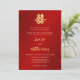 This version has a headline to announce the wedding by the parents of the bride and groom. This elegant Chinese wedding invitation features an artistic gold double happiness symbol on a floral ruby red shimmering background. Bride and groom names in an elegant handwritten script. Chinese wedding invitation or tea ceremony invitation.