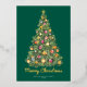 This non-photo holiday card features a vintage illustration of a decorated Christmas tree accented with raised foil ornaments and stars on a deep green background. The foil greeting on the front of the card says "Merry Christmas" but is editable and can be changed to anything you like. There is also space for your names and the year. On the back of the card is a festive green and white polka dot background which can be removed/edited... you can also add a photo and/or additional text to the back.
