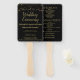 Give your guests an easy and fun way to follow along with the wedding ceremony with these program fans. Designed as a part of our Shimmering Sparkles Wedding Suite, they feature an elegant yet whimsical design of pink & gold stars with gold text over a black background. Fully customisable with places to enter ceremony details as well as the names of the wedding party.