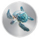 An insanely detailed shimmering turtle on a silver background.
