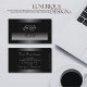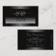 Make a lasting impression with this elegant and modern business card design featuring a black grey and white colour gradient with a shimmery dark decor frame. Matching outstanding initials with mirror shadow effect and your signature.