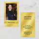Modern, minimal yet luscious, and very elegant European-size business card with a custom photo and name on shiny golden backgrounds on the front, and with templates for name, title, mobile phone number, email address, website address, and street / mailing address and office phone number on the back, on a shimmering gold background. Great look for self-employed professionals such as realtors, interior decorators, editors, writers, etc., and also for professionals such as lawyers and financial consultants looking for a stylish, sharp, luscious yet minimalist design.