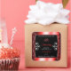 Matching a luminous shimmery ruby red frame and cute hearts graphic on a black background.