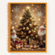 A vibrant Christmas design featuring a gold-accented tree, Santa, gifts, and snowflakes, set against a dotted light background for a festive, sparkling holiday feel. "Original Image was generated by Meta AI. AI generated artwork. Licensed under CC BY-SA 4.0."
