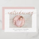 Modern elegant birth announcements feature your favourite horizontal or landscape orientated newborn photo with "introducing" across the top in rose gold foil calligraphy script lettering. Baby's name and birth stats appear beneath. Add six additional photos to the back in a collage layout, or delete to leave blank.