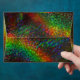 A digital design made to resemble holograms and glitter. A sheen of rainbowy lights flicker all over this glittery holographic texture. Bright colourful waves of light shine all over in a wavy pattern.