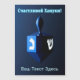 A modernistic, metallic, blue dreidel against a dark, night-like background. Two of the Hebrew letters found on a dreidel, nun and shin, glow brightly. Cyrillic (Russian) text reading, "Счастливой Хануки!" (Schastlivoi Hanuki - Happy Chanukkah) appears in glowing blue and white. Add your own additional text in Cyrillic, or change to an English-language font.