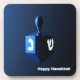 A modernistic, metallic blue dreidel against a dark, night-like background. Two of the Hebrew letters found on a dreidel, nun and shin, glow brightly. Text reading "Happy Hanukkah" also appears in glowing blue and white.