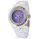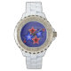 Beautiful & Stylish Rhinestones White Enamel Watch Featuring our Shiny Blue & Red Stars Design - Perfect Fashion for The 4th of July!