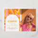 Add some shine to your birthday invitations invitations with real gold, silver, or rose gold foil! This classic and timeless metallic style is sure to add another level to your invites. Let's get groovy! Custom photo birthday party invitations. A vibrant and playful birthday party invite with bright colours, a chic arch, and retro-inspired typography. The front of these cards features a big hippie swirl pattern. There is a white arch overlay for the event details. The text starts with "Let's get groovy!" in a chic combination of casual handwriting script and groovy typography detailed with real foil. This design features a bold 60s & 70s pink, orange, and yellow colour scheme. On the right-hand side of the card, there is a photo of the birthday girl in a retro wave border. These birthday invitations reverse to the same colourful background. A modern take on a retro theme! These invites are perfect for spring birthdays or summer parties. Any age girl birthday party invitations. This invitation template is editable online, simply click on "Personalise this template" to get started. If you want to edit fonts, placement, foil, or colours, simply scroll to "Click to customise further" and use the Zazzle design tool. You can easily choose from gold, silver, and rose gold foil from the tool above. Please note the cards are printed as you see them on your screen when ordering, so be sure to double-check for typos! Other versions of this design are available in the collection linked on this page. Browse my store for more girl birthday party invitations.