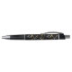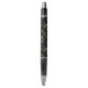 Stylish modern pen design for hairstylists with faux gold and silver scissors pattern on a black background. The background is fully customisable.