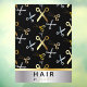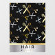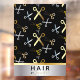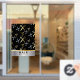 Stylish personalised window cling design for hairstylists with faux gold and silver scissors pattern on a black background. The text is fully customisable.