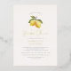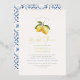 Add some shine to your bridal shower invitations with real gold, silver, or rose gold foil! This classic and timeless metallic style is sure to add another level to your invites. Celebrate the bride-to-be in style with this elegant and modern lemon-themed bridal shower invitation. Featuring a beautiful hand-painted watercolor illustration of two lemons and lemon blossoms hanging from a tree branch, this chic watercolor invitation is perfect for a variety of bridal shower themes. The classic, elegant typography, paired with modern handwritten calligraphy and real foil, creates a sophisticated and contemporary look that will impress guests. The back of the invitation features painted blue Italian tiles, adding a touch of Mediterranean charm to this design. Perfect for any spring or summer bridal shower event, whether a backyard brunch, a vineyard tour, or a beachside celebration, this invitation will bring a touch of sunshine to any occasion. Whether you're planning a rustic, farmhouse, Italian-inspired, or citrus-themed bridal shower, this invitation is sure to set the tone for a memorable event. Personalise the invitation with your event details, or use Zazzle's easy-to-use Design Tool to change fonts, colours, and placement. You can easily choose from gold, silver, and rose gold foil from the tool above. A "She found her main squeeze" version of this design is available in our store. Browse our store for more lemon bridal shower invitations. Feel free to message me with any questions - I'll be happy to help!
