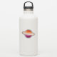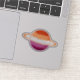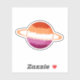Digital art of a shiny planet in the colours of the lesbian flag surrounded by rings like Saturn in outer space.