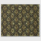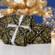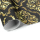 Shiny Looking Gold Floral Damask On Black Wrapping Paper