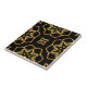 Elegant ceramic tile design featuring a seamless pattern made of geometric shapes in faux gold shades on a black background.