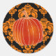 Shiny Orange Autumn Pumpkin Orange Black Damask Classic Round Sticker