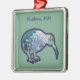 Christmas Tree Ornament with a Kiwi Bird and a personal message on the front, a great Christmas decoration for the Xmas Tree. This decoration features a message, in this example it reads "Christmas 2023" but which can be personalised, and replaced with words of your choice. On the front is also the native NZ Kiwi bird in a shimmery, sparkly rainbow, Pāua-colour, against a gorgeous pale green. This would make a great memory keepsake!