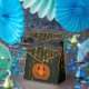 Cool Black Tent Favour Box Featuring Shiny Pumpkin Halloween String Lights Design - Great for Halloween Party Favours!