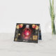 Elegant graduation thank you card, featuring a shiny red disco ball with colourful graduation hats and decorations of the 80s.