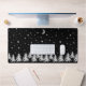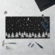 Shiny silver Christmas Tree and Stars on black Desk Mat