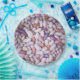 Shiny white and purple cool beans. Photo of a white and violet colourful dry legumes.