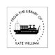 Custom Ex Libris Stamp features a vintage ship silhouette and classic sans-serif fonts. Personalise this beautiful raven from the library of custom rubber stamps with your name.