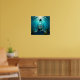 A ship in a bottle sitting in the bottom of the sea with sun rays beaming poster .