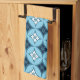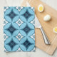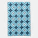 Traditional Japanese Shippo, or "seven treasures" patterned tea towel of interlocking circles with a central flower motif - blue and white flowers with an indigo and sky blue patterned background