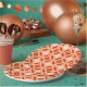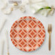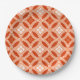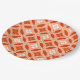 Paper Plates in a traditional Japanese Shippo, or "seven treasures" patterned of interlocking circles with a central flower motif - flowers in cream and tangerine orange with a deep mandarin and pastel orange patterned background