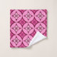 Towel set in a traditional Japanese Shippo, or "seven treasures" patterned of interlocking circles with a central flower motif - flowers in pastel and fuchsia pink with a deep pink and burgundy wine patterned background