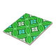 Ceramic tile in a Japanese Shippo, or "seven treasures" pattern - flowers in white and aqua on a light, medium and dark jade green patterned background - design repeats horizontally and vertically