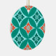 Ornament in a traditional Japanese Shippo, or "seven treasures" pattern of interlocking circles with a central flower motif - flowers in coral orange and teal with a turquoise / peacock and light aqua patterned background