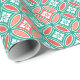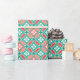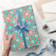 Shippo with Flower Motif, Turquoise and Coral Wrapping Paper