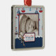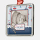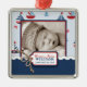 Sweet nautical theme design with sailboats, anchors, and crabs and 3D-look trim and twine bow baby boy photo pendant.