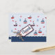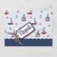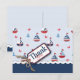 Nautical colours in classic red, white, and blue with anchor and crabs and a novelty thank you tag with twine.