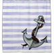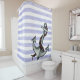 Original watercolor painted design by Sandra Gale, featuring a bold metal anchor with a large rope wrapped around it. Horizontal painted translucent stripes make a watery nautical background for this summer shower curtain. Great for beach bungalows and shore homes!