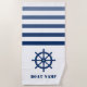 Ships Wheel Helm Your Boat Name Blue White Stripe Beach Towel