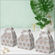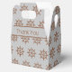 Nautical party or wedding favour box in grey with ship's wheel pattern. "Thank you" text is printed across the front top as a template, and the box folds to make a handle. Masculine grey colour with brown wheels that cover the box. Fill this fun little box with party favours for guests.
